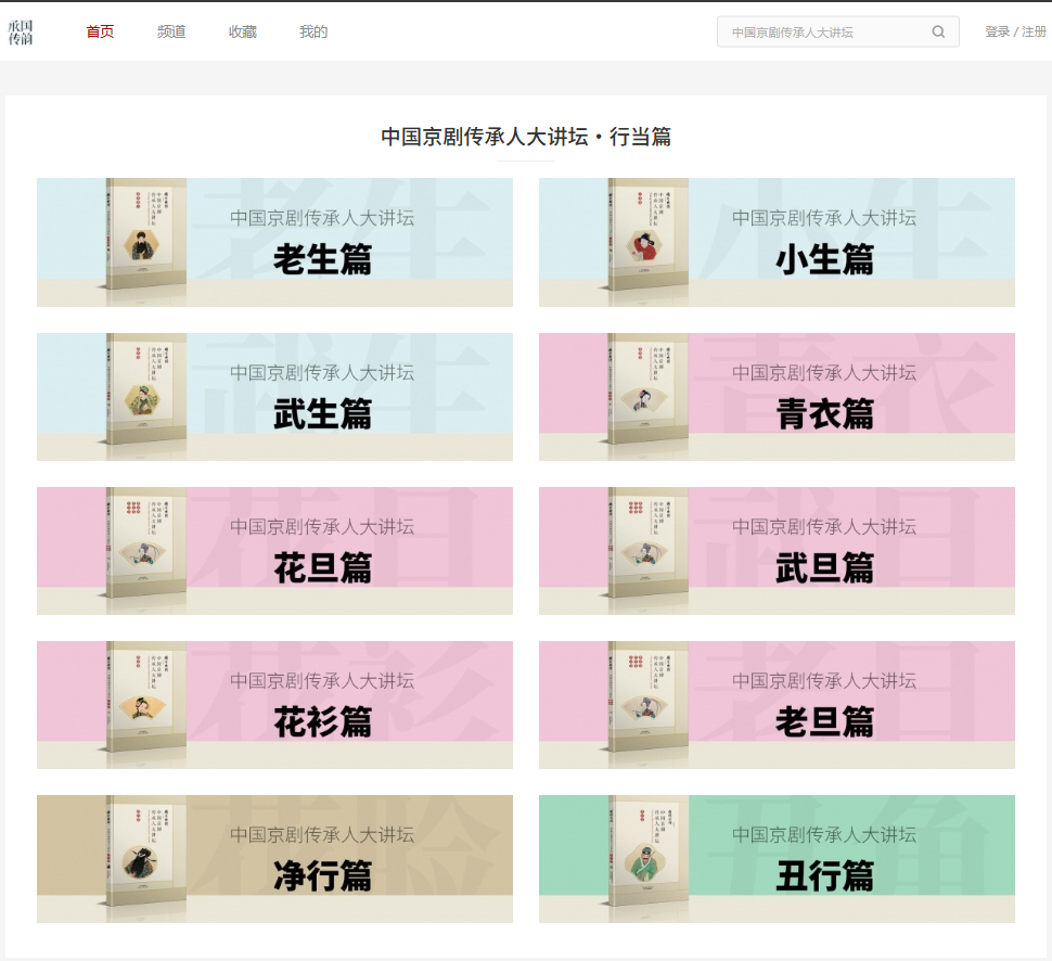 《国韵承传——中国京剧传承人大讲坛》共100集,由57位非遗传承人共同完成。它以京剧各行当的发展为线,以不同时期流派顶级代表人物的经典剧目为点,从京剧各行当的由来、分类、化妆、造型、唱腔、念白和流派等多个维度展开,完整地展现了京剧艺术的精髓。其中的最先出版的“丑行篇”于2019年获得“第七届中华优秀出版物奖音像制品提名奖”。